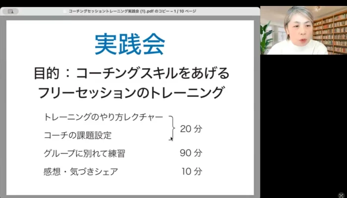 https://youtu.be/iOhxUcahgtE 実践会は、コーチングスキルを上げるフリーセッションのトレーニングの場ですコーチ役、クライアント役、フィードバック役の3つの役割を
